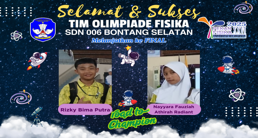 Samarinda, 13 Mei 2025 – Perjalanan luar biasa dua siswa SDN 006 Bontang Selatan di kancah Olimpiade Fisika terus berlanjut! Setelah persaingan sengit di babak semifinal, Nayyara Fauziah Athirah Radiant dan Rizky Bima Putra berhasil mengamankan tempat di babak final, menjadi dua dari hanya sepuluh siswa terbaik yang melaju ke tahap puncak kompetisi.